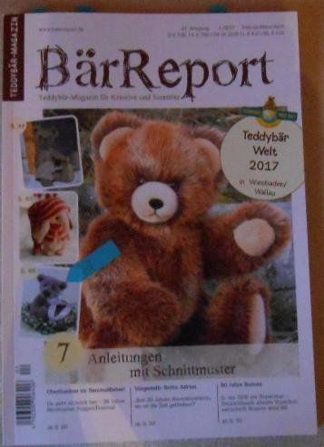 Im BärReport 1/2017 wurde meine Geschichte "Schmusemonster beim Frisör" veröffentlicht. Außerdem gibt es wieder einen Schnitt von mir und ein Künstlerportrait über mich.
